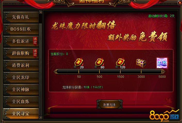 2、活动说明:龙珠魔力限时翻倍,额外奖励免费领