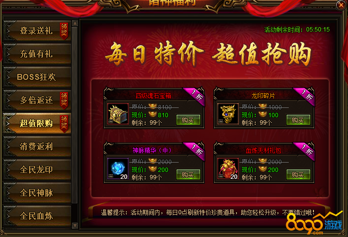 2、活动说明:活动期间内,每日0点刷新特价珍贵道具。