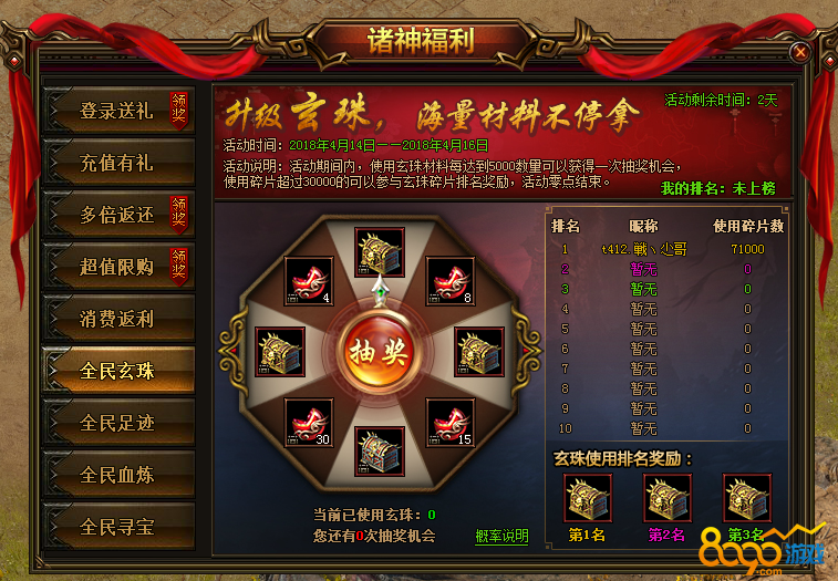 2、活动说明:活动期间,使用玄珠碎片达到一定数量可以领取相应的奖励,使用碎片超过30000的可以参与玄珠碎片排名奖励,活动零点结束。