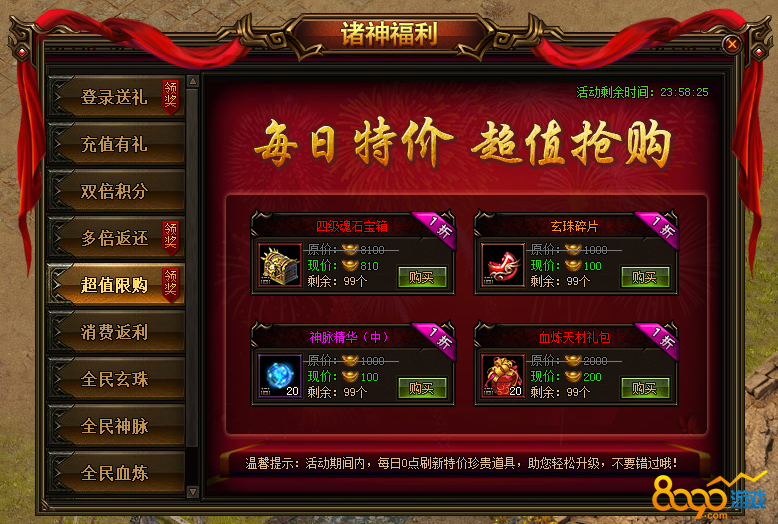 2、活动说明:活动期间内,每日0点刷新特价珍贵道具。