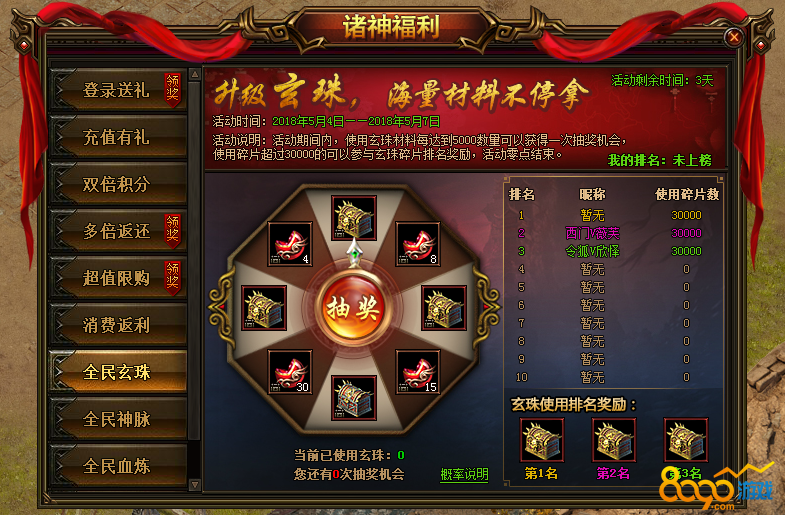 2、活动说明:活动期间,使用玄珠碎片达到一定数量可以领取相应的奖励,使用碎片超过30000的可以参与玄珠碎片排名奖励,活动零点结束。