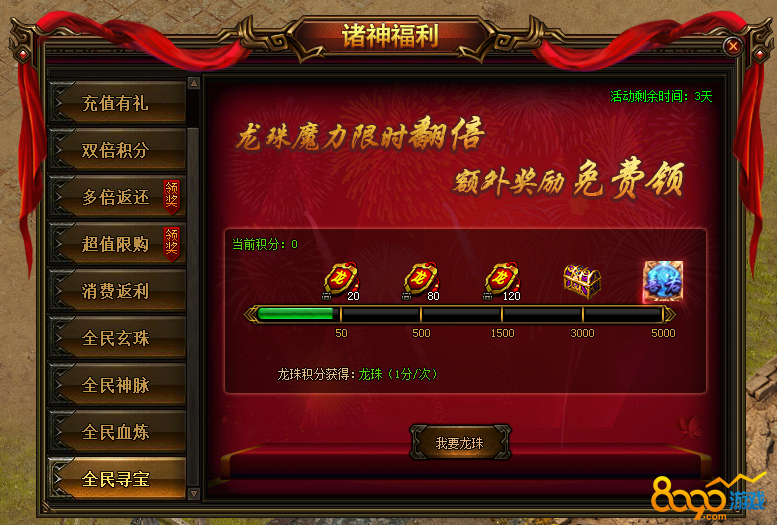 2、活动说明:龙珠魔力限时翻倍,额外奖励免费领