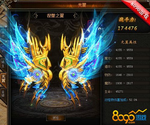 之所以要说羽翼是因为第一他靓丽的外形第二就是他的属性了,其实在8090天地诸神中光翼就是通常所说的羽翼,升级后可以增加基础的三维攻击以及防御、生命、对怪物伤害加成,也是刷怪对决中的重要因素。