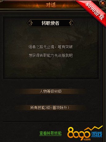 当大家等级达到90级的时候就会出现转职的图标,这个时候大家就可以开启转职的功能了,而且转职也是有要求的那就是本身6个职业技能需要全部达到3级以上哦,值得注意的是所有职业第一次转职是免费的,如果第一次转职对自己的新职业不满意,可以消耗元宝在转职使者那边进行二次转职。