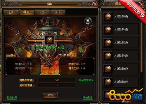 在8090天地诸神中勋章最大的用处就是可以提升人物的物理防御以及魔法防御,勋章的等级越高获得的防御效果加成也会越高,通过神炉中的勋章界面就可以了解自己的勋章等级情况咯。