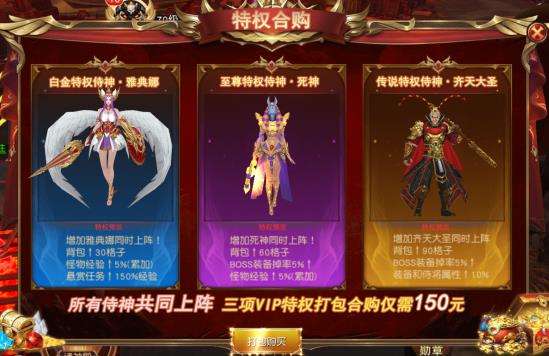 多组直购礼包组合活动,礼包包含系珍稀时装外显和游戏特权资源等。