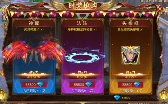 商城直购充值钻石时提供首充获得的稀有特殊时装和额外特权功能,吸引玩家进行钻石首充。