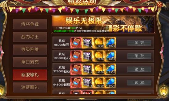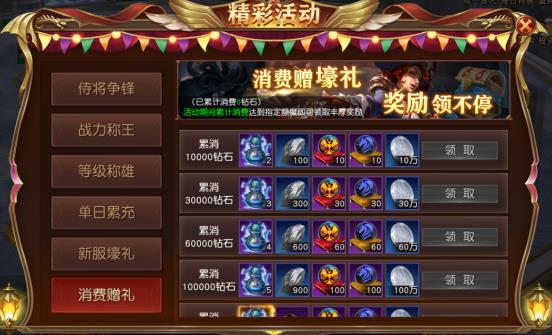 活动期间根据玩家累计消耗的钻石数量,达标后领取福利。