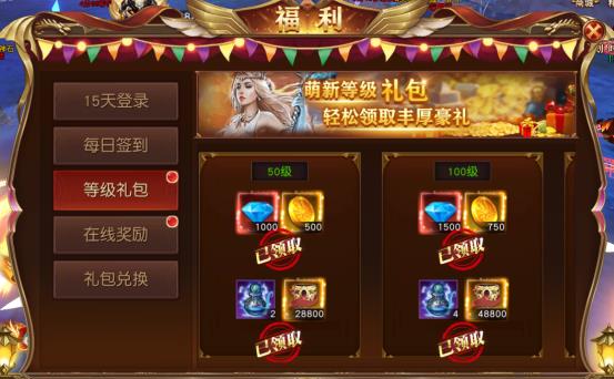 活动期间根据玩家角色达到的等级获得奖励,奖励包括免费内容和钻石礼包2种。