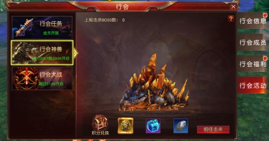 玩家通过行会活动完成行会任务、挑战行会BOSS、参与行会攻城战,更能快速的提升角色等级、装备,甚至能够获得许多非常稀有的奖励。