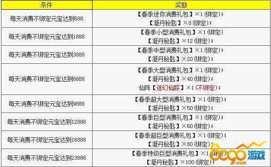 【活动内容】活动期间,活动期间每天累计消费达到一定元宝均可领取奖励: