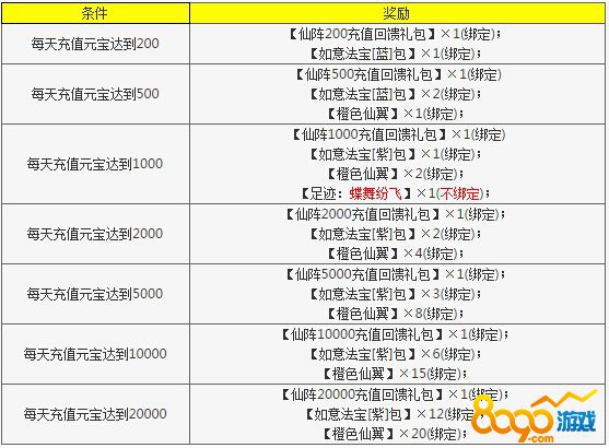 【活动内容】活动期间,活动期间每天充值达到一定元宝可领取奖励: