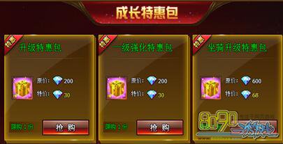 1.升级特惠包,原价200钻石,特价30钻石;