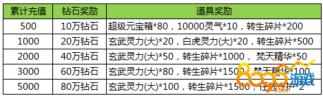1、满足要求的玩家可领取对应奖励,只可领取高档的奖励。比如玩家充值5000则只能领取5000档的奖励