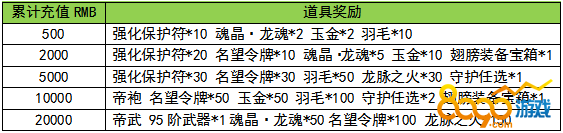 活动规则:活动期间累计充值满足条件可以领取对应的装备奖励