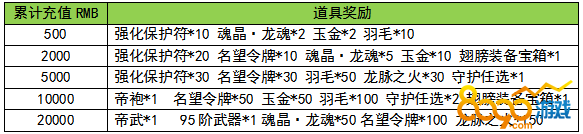 活动规则:活动期间累计充值满足条件可以领取对应的装备奖励
