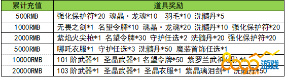 活动规则:活动期间累计充值满足条件可以领取对应的装备奖励