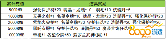 活动规则:活动期间累计充值满足条件可以领取对应的装备奖励