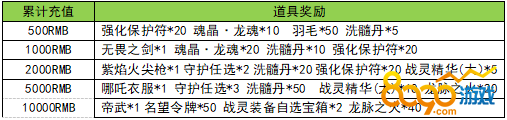 活动规则:活动期间累计充值满足条件可以领取对应的装备奖励