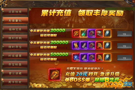 活动内容:每日累计充值达到指定金额,免费领取相应丰厚奖励!