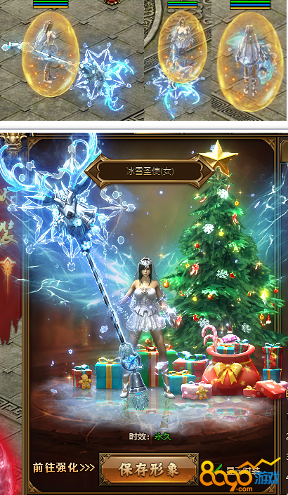 全新坐骑外观—麋鹿雪橇,全新时装—冰雪圣杖、冰雪圣使(女)