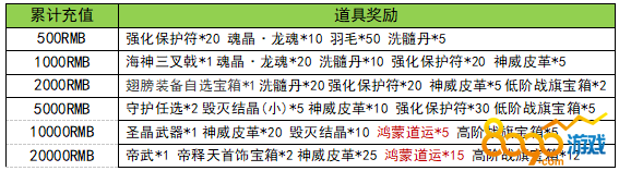 活动规则:活动期间累计充值满足条件可以领取对应的装备奖励