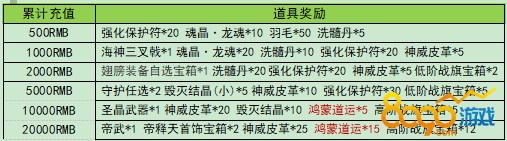 活动规则:活动期间累计充值满足条件可以领取对应的装备奖励
