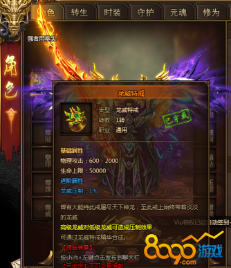 2. 龙威特戒携带特殊属性【龙威压制】,可对龙威比自己低的敌人造成更高的伤害;