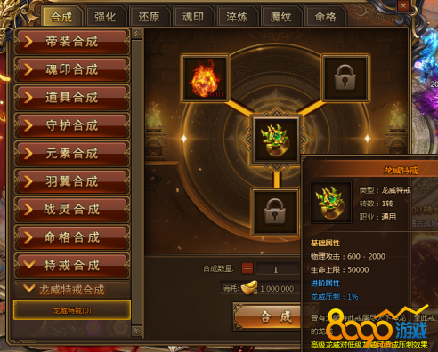 3. 龙威特戒的获取通过【锻造-合成】消耗龙威特戒精华合成;