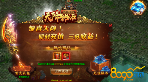 2. 天降钻石的奖励改为【元宝箱(绑定)*88】、【3333福利钻石*1】.