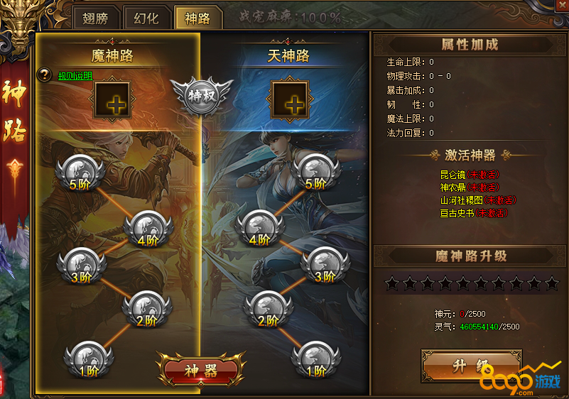 系统分为魔神路,天神路,两条路可同时升级互不干扰;