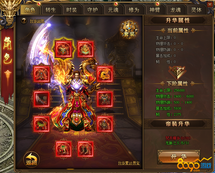 2.消耗梵天精华和龙脉之火,可对所有帝装部位进行升华,