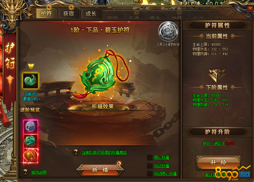 冥冥之中,自有天定。新增护符系统,玩家可在“角色”-装备页面中查看。可通过“祈福”抽取超爽buff