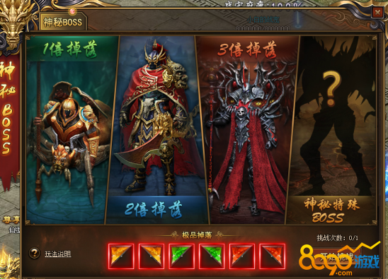 可通过活动图标进入神秘boss界面,每天可挑战一次,次日0点重置;