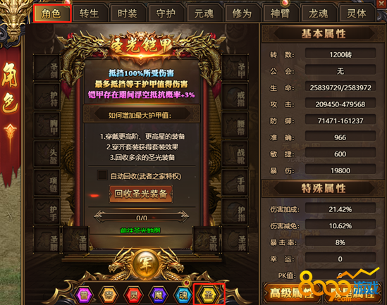 开服30天后,300级以上的玩家将开启新增新功能--圣光装备和新场景--圣光地图;