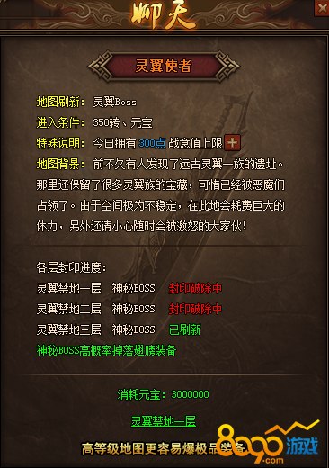 还没能进入当前地图的小伙伴也不要着急,坚持做每日任务,提升转生等级,达到350转就可以进去当前地图了,好了,废话不多说了,下面为大家介绍一下挑战《灵翼禁地》任务的一些规则。