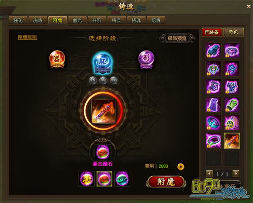 1. 玩家通过镶嵌对应的魔石提升装备的属性。