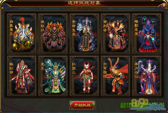 3.进入副本之后会出现选择BOSS的界面,玩家可以选择单个BOSS来挑战,当然,如果你觉得可以以一当十,你也可以选择多个BOSS进行挑战,每击杀一个BOSS将会有随机刷出增益BUFF帮助你击杀这些BOSS哦。