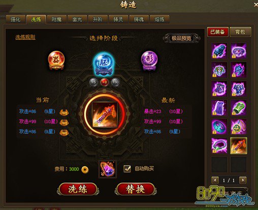1.装备的洗练分为胚、形、器三个阶段。
