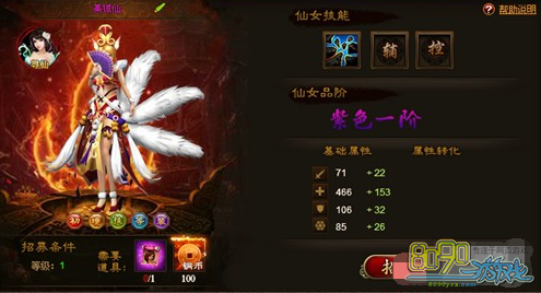 搜索"8090网页游戏"玩过天祭的玩家都知道,游戏中有一种叫仙魅系统,仙魅系统里有很多小伙伴紫霞、玫瑰仙子、七仙女、瑶池仙姬等,今天小编来给大家介绍一下美狐仙的获得方法,赶紧往下看吧。