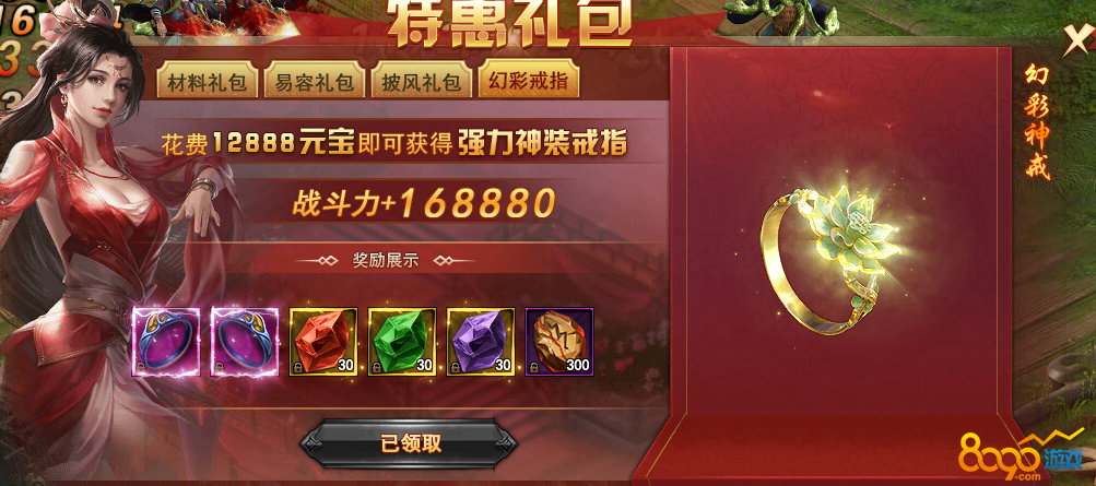 累计登陆7天:装备兑换券*20、坐骑进阶丹*15。