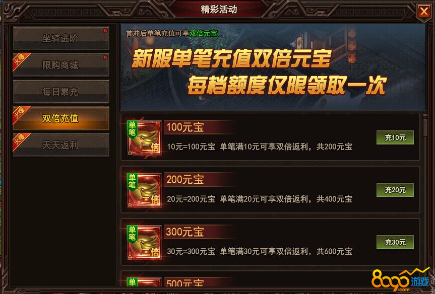 累计登陆4天:装备兑换券*10、坐骑进阶丹*10;
