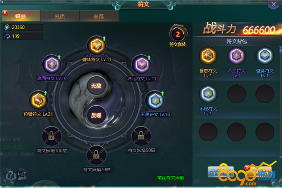 我们的玩家要获得符文,可以在符文妖塔中获得,当玩家获得对应属性的符文进行升级,就可以提升人物属性,当然符文可以升级,多个符文升级到一定等级,就可以激活符文套装属性。