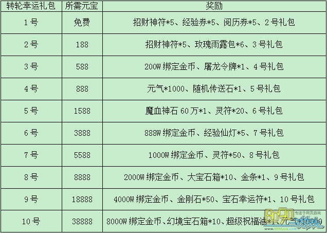 新增:转轮幸运礼包可以开出“转轮幸运礼包②”,最多开出⑩号