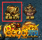 1.选择8090《屠龙荣耀》区服进入,完成角色创建,点击右上角的"奖励大厅"。