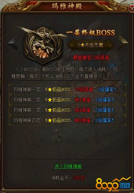 游戏屠龙荣耀中玛雅神殿是可以刷新全系列BOSS哦,而且这里人少BOSS多,是一个不可多得的打BOSS好地方哦。心动的小伙伴可以去看看哈。