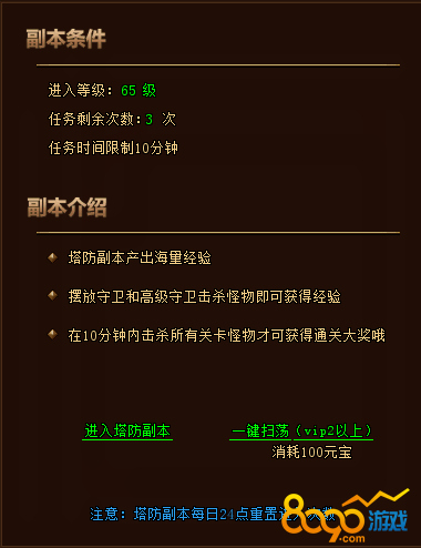 塔防副本是屠龙战神游戏获得经验的重要途径。在塔防副本中摆放守卫和高级守卫击杀怪物即可获得经验,10分钟之内击杀所有关卡怪物可以获得通过大奖。下面就来具体介绍一下塔防副本。