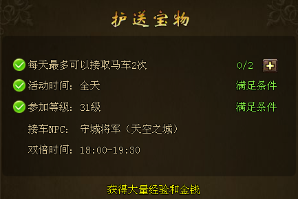 玩家等级达到31级后可以进行2次的宝物护送,其实在宝物护送的时候有几率刷出橙色品质的哦,当然玩家还是要消耗魔晶的哦,下面小编就介绍下方法吧。