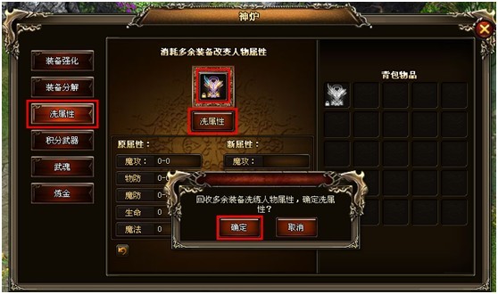 2、通过消耗装备来增加人物属性值,装备等级越高洗出来的属性越好。