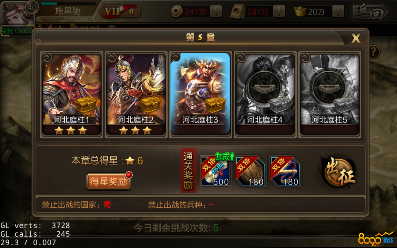经典战役每日挑战次数及可购买次数较少,但每次通关均会奖励固定值经验,推荐每日买光所有次数。